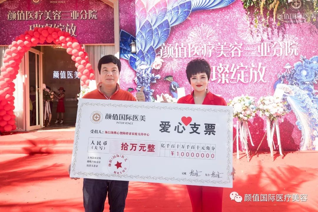 2018年9月5日,在三亚耀颜值医美开业仪式上,耀颜值医美总经理张丽女士为海口海燕心智障碍家庭支持中心捐赠了10万元爱心基金,给心智障碍家庭带去了温暖和希望。