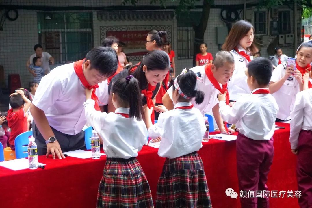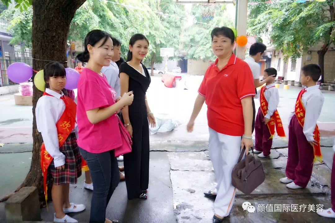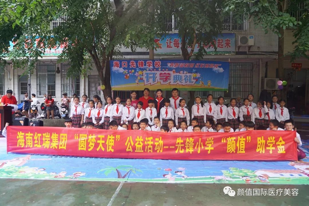 耀颜值医美爱心公益小分队与先锋学校全体师生合影
