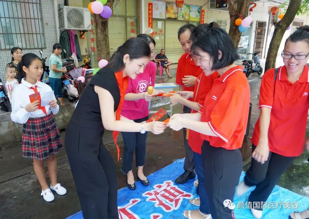 耀颜值医美副总经理何芬女士为学生们发放助学金,鼓励他们认真学习,勇敢地追逐梦想。